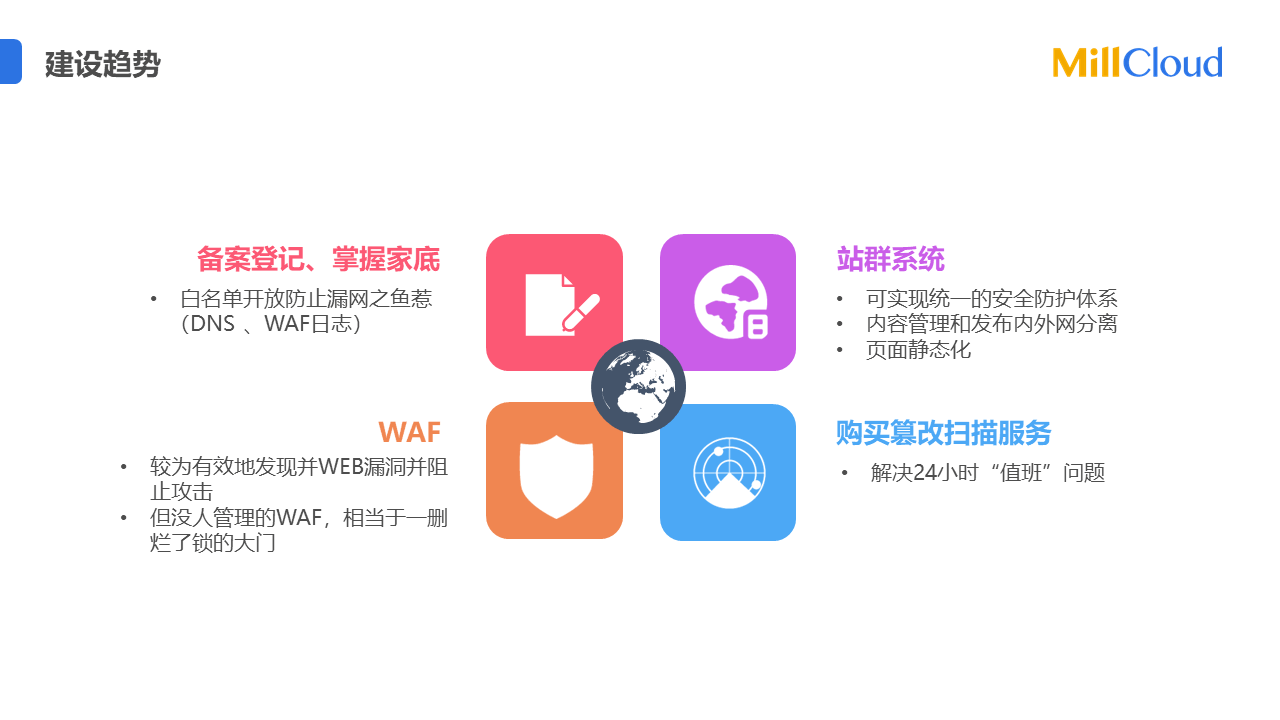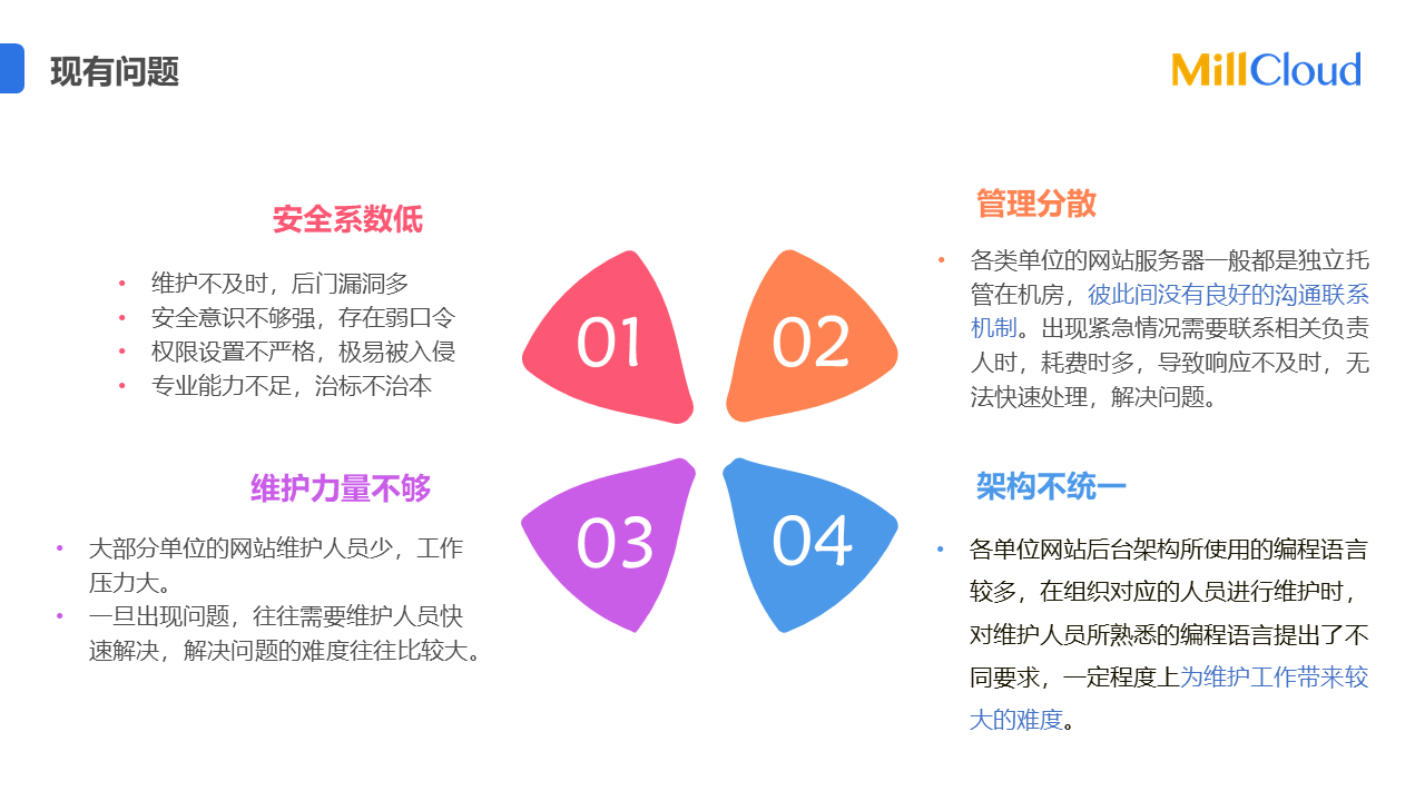 響應(yīng)國家層面要求黨政機(jī)關(guān)、事業(yè)單位和國有企業(yè)開展網(wǎng)站群建設(shè)的要求,打造網(wǎng)站集約化管理系統(tǒng),建設(shè)滿足等級保護(hù)要求的網(wǎng)站管理系統(tǒng),從根本上解決網(wǎng)站“有人建、沒人管,有人用、沒人防“的問題。