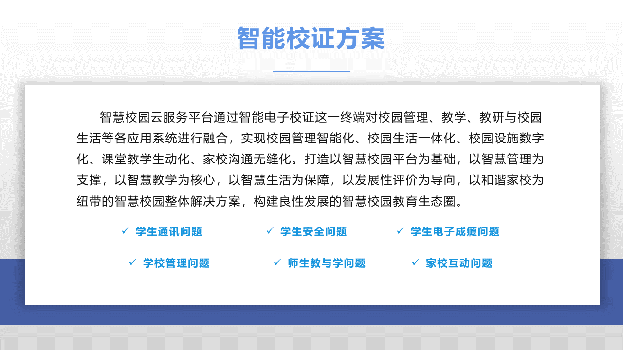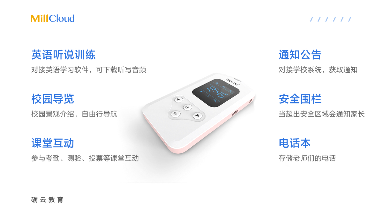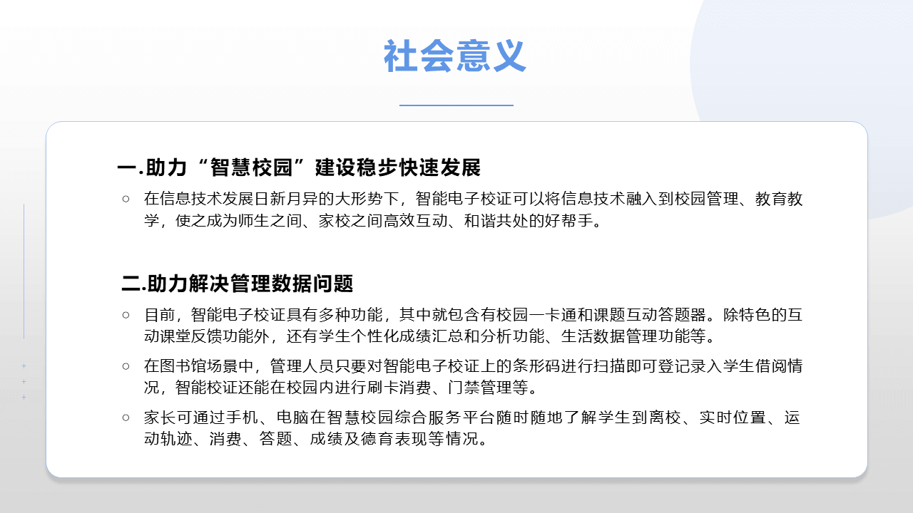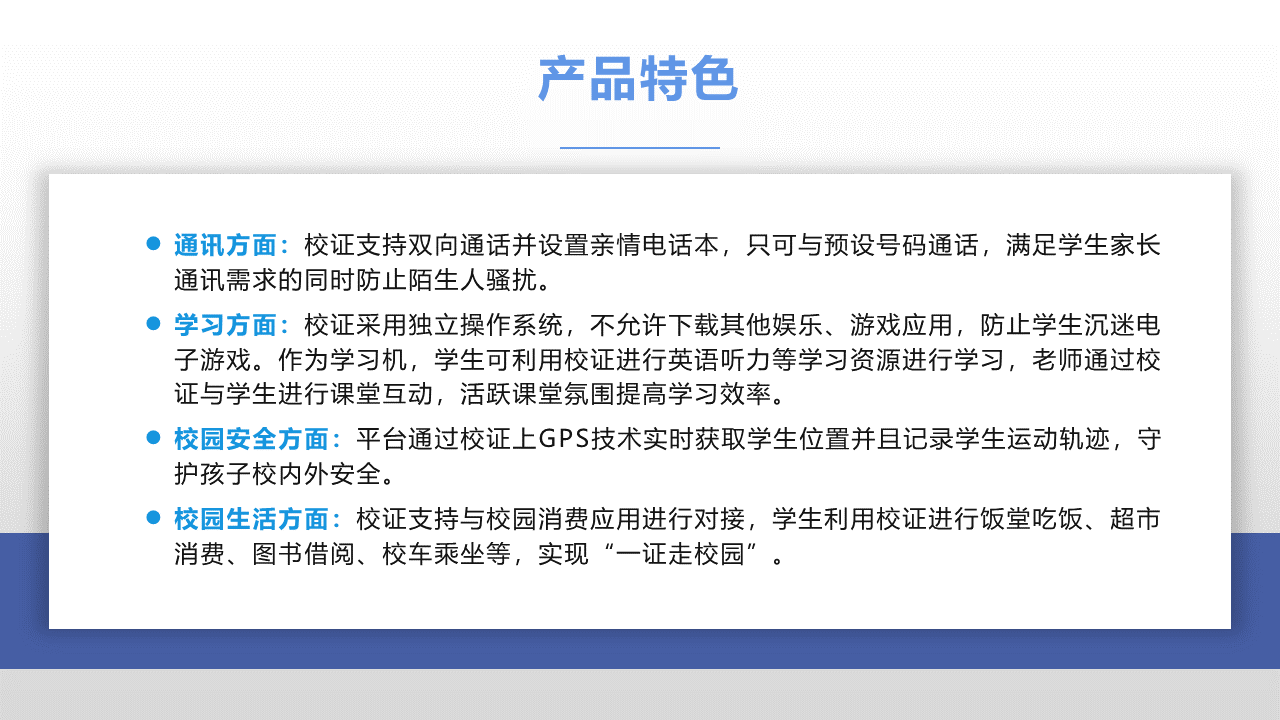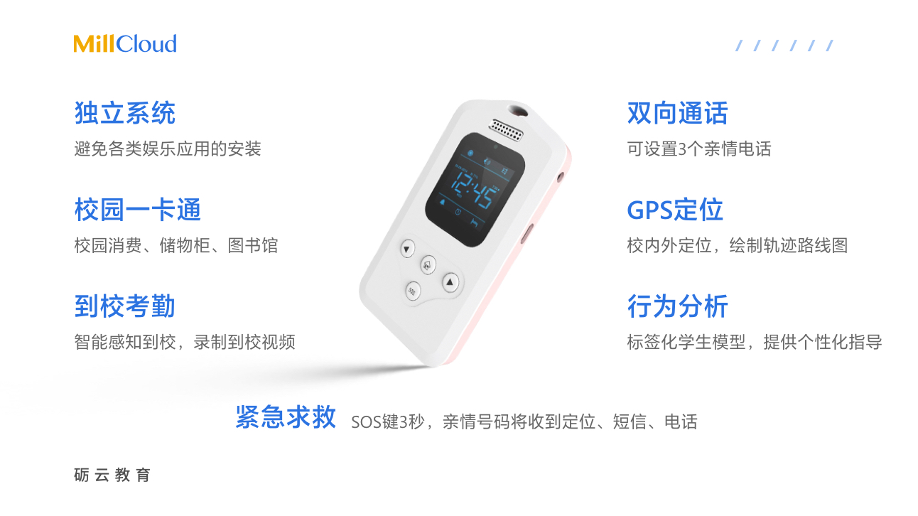 礪云智能電子學(xué)生證證基于人工智能技術(shù),利用RFID、GPS、無線通訊等多項先進技術(shù),對中小學(xué)生這一特定群體進行海量信息采集,通過互聯(lián)網(wǎng)對數(shù)據(jù)進行分析。終端與后臺通過有效的互動交流,形成一個綜合性智慧校園平臺。